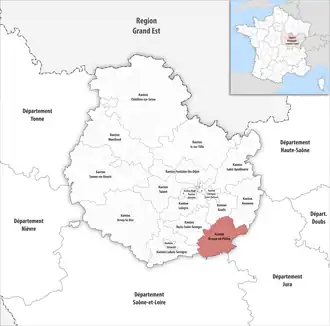 ![]() Lage des Kantons Brazey-en-Plaine im Département Côte-d’Or | |