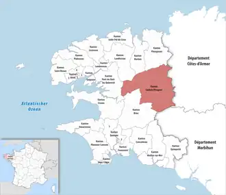![]() Lage des Kantons Carhaix-Plouguer im Département Finistère | |