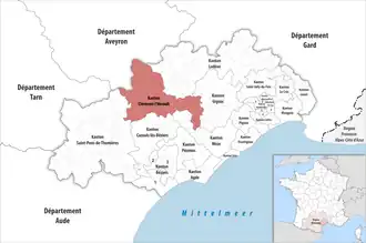 ![]() Lage des Kantons Clermont-l’Hérault im Département Hérault | |