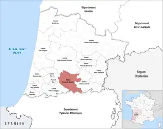 ![]() Lage des Kantons Coteau de Chalosse im Département Landes | |
