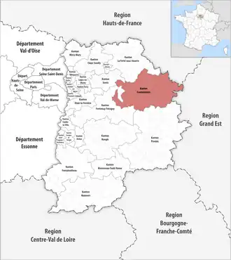 ![]() Lage des Kantons Coulommiers im Département Seine-et-Marne | |