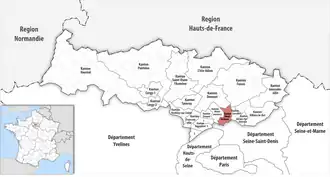 ![]() Lage des Kantons Deuil-la-Barre im Département Val-d’Oise | |