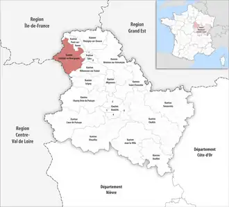 ![]() Lage des Kantons Gâtinais en Bourgogne im Département Yonne | |