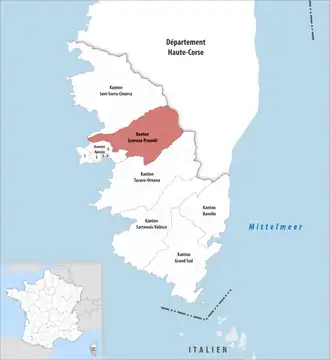 ![]() Lage des Kantons Gravona-Prunelli im Département Corse-du-Sud | |