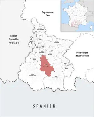 ![]() Lage des Kantons La Haute-Bigorre im Département Hautes-Pyrénées | |