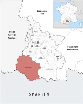 ![]() Lage des Kantons La Vallée des Gaves im Département Hautes-Pyrénées | |