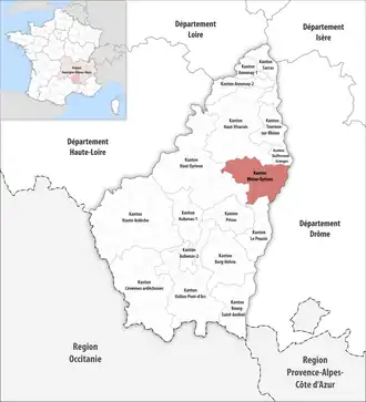 ![]() Lage des Kantons Rhône-Eyrieux im Département Ardèche | |