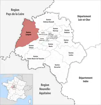 ![]() Lage des Kantons Langeais im Département Indre-et-Loire | |