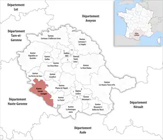 ![]() Lage des Kantons Lavaur Cocagne im Département Tarn | |