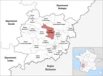 ![]() Lage des Kantons Le Livradais im Département Lot-et-Garonne | |