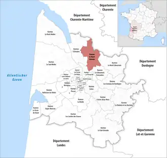 ![]() Lage des Kantons Le Nord-Gironde im Département Gironde | |