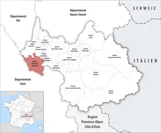 ![]() Lage des Kantons Le Pont-de-Beauvoisin im Département Savoie | |