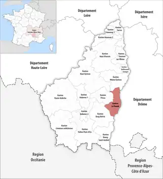 ![]() Lage des Kantons Le Pouzin im Département Ardèche | |