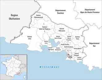 - ↑ Décret n° 2014-271 du 27 février 2014 portant délimitation des cantons dans le département des Bouches-du-Rhône publiziert im JORF und auf Légifrance (französisch).