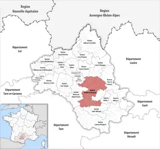 ![]() Lage des Kantons Raspes et Lévezou im Département Aveyron | |