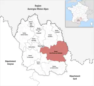 ![]() Lage des Kantons Saint-Étienne-du-Valdonnez im Département Lozère | |