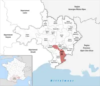 ![]() Lage des Kantons Saint-Gilles im Département Gard | |