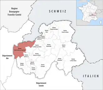 ![]() Lage des Kantons Saint-Julien-en-Genevois im Département Haute-Savoie | |