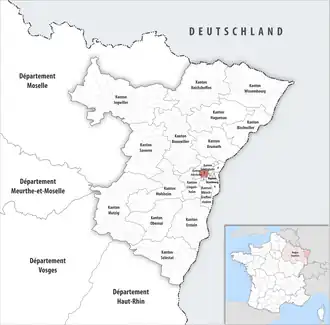 ![]() Lage des Kantons Straßburg-3 im Département Bas-Rhin | |