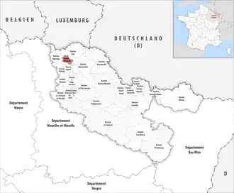- ↑ Ohne die Exklaven Garche und Kœking, diese gehören zum Kanton Yutz.