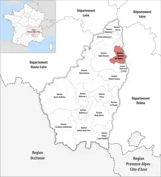 ![]() Lage des Kantons Tournon-sur-Rhône im Département Ardèche | |
