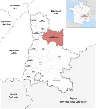 ![]() Lage des Kantons Vercors-Monts du Matin im Département Drôme | |