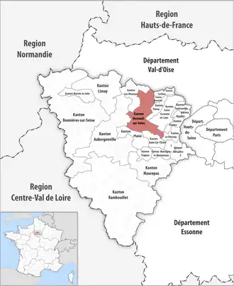 ![]() Lage des Kantons Verneuil-sur-Seine im Département Yvelines | |