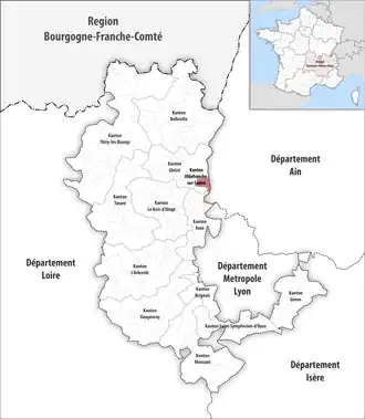 ![]() Lage des Kantons Villefranche-sur-Saône im Département Rhône | |