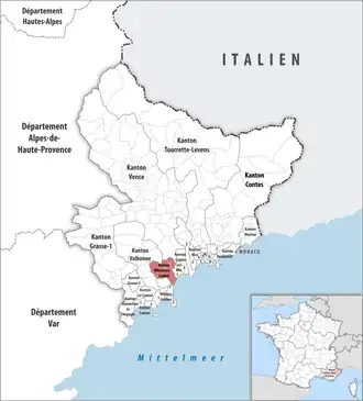 ![]() Lage des Kantons Villeneuve-Loubet im Département Alpes-Maritimes | |