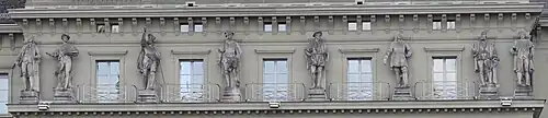 Die Fassade wurde 1871 mit einer Reihe von überlebensgrossen Attika-Standbildern versehen. Diese wurden von Theodor Zeerleder gestiftet, jedoch von Robert Dorer entworfen und von Ludwig Keiser und Heinrich Rudolf Meili geschaffen. Sie wurden im Oktober 1924 durch Kopien ersetzt[1].
