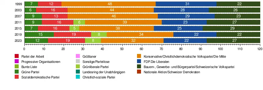 - ↑ Sitzzuteilung Wahlkreise. Abgerufen am 2. April 2023.