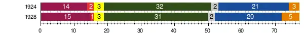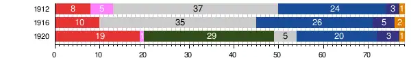 Bei den Wahlen von 1904 bis 2024 erreichten die angetretenen Parteien folgende Sitzzahlen:[8][3]