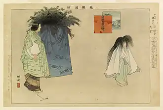 - ↑ Takigi Sarugaku (薪猿楽) ist ein Bühnenstück, das bei Dunkelheit im Feuerschein (薪, Takigi) aufgeführt wird.