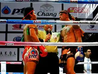 - Superweltergewichts-Champion des Rajadamnern Stadion (สนามมวย ราชดำเนิน; Aussprache [sànǎːm muːaj râːtdamnɤn]) im Muay Thai