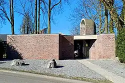 Mittig auf dem Flachdach wurde anstelle eines Glockenturmes eine große hohe Rundbogennische mit Glasboden aufgesetzt, durch die indirektes Licht in die darunter liegende Nische im Kapelleninneren geleitet wird. Darin steht seit 1971 eine von zwei Engeln flankierte Skulptur der Katharina von Siena aus dem Atelier der Raerener Künstlerin Maria Hasemeier-Eulenbruch. Es ist die zweite Ausfertigung der Katharina-Statue, nachdem die ursprüngliche aus dem Jahr 1968 durch Vandalismus beschädigt worden war. Die beschädigte Statue wurde von Hasemeier-Eulenbruch wieder zusammengesetzt und am 7. September 1985 in einer Nische in der Krypta des neuen Begegnungshauses aufgestellt.