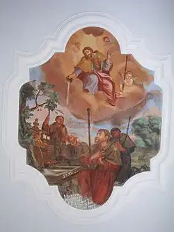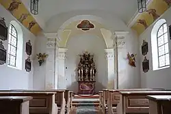 In der Hohlkehle des Tonnengewölbes sind die zwölf Apostel gemalt. Sie wurden erst bei der vorletzten Renovierung 1951/52 wiederentdeckt und stellen eine gute ländliche Arbeit dar.