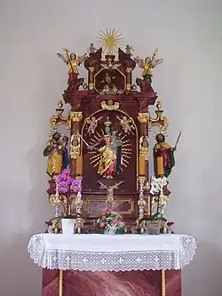 Eine Kostbarkeit geworden sind die Kreuzwegbilder, nicht bloß wegen ihrer barocken, sehr ausdrucksvollen Komposition, sondern auch wegen der Originalrahmen, die erst vor kurzem wieder aufgefunden wurden. Das bisherige hölzerne Vorzeichen gegen Westen erhielt nun einen weiteren Vorbau als Eingang mit einem Treppenaufgang.