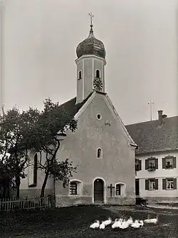 Wann die erste Kapelle am heutigen Kapellenplatz erbaut wurde, ist nicht bekannt. In einem Schriftstück des Klosters Zwiefalten wird aber mitgeteilt, dass am 9. September 1385 eine kleine Kapelle durch den Generalvikar von Konstanz geweiht wurde, nachdem eine zerfallene Kapelle an selber Stelle wieder aufgebaut worden war.[1]