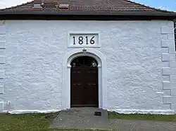 Das Bauwerk hat einen rechteckigen Grundriss mit verputzten Wandflächen auf einem umlaufenden Sockel sowie einer Quadergliederung an seinen Ecken. Die Ostseite ist gerade; dort sind zwei kleine, gedrückt-segmentbogenförmige Fenster, deren Form durch eine aufgeputzte Laibung nochmals betont wird. An der Nord- und Südseite sind jeweils drei gleichartige Fenster. Die Westseite ist fensterlos. Dort ist mittig eine rechteckige Holztür, die in eine gedrückt-segmentbogenförmige Öffnung mit Oberlicht und Kämpfer eingelassen ist. Darüber ist in einer rechteckigen Blende die Jahreszahl 1816 eingelassen. Das Bauwerk trägt ein schlichtes Walmdach.
