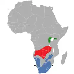 - M. c. capensis Linnaeus, 1766 – Westen und Süden von Namibia, südöstliches Botswana, der Großteil Simbabwes sowie vom Westen und Süden Mosambiks südwärts bis ins südliche Südafrika.