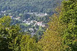 Blick auf Stühlingen mit Krankenhaus Loreto und Kloster vom Schlossturm des Schloss Hohenlupfen