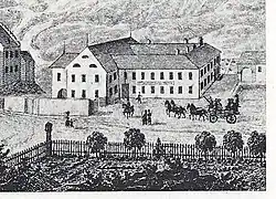 - 1814 wurde der Konventstrakt aufgrund eines Typhusausbruches innerhalb der Schwarzenbergischen Armee in ein Seuchenlazerett umgebaut und erhielt den Anbau einer zweistöckigen großen Latrinenanlage an der Westseite. Bis 1816 wurde der Konvent als Militärspital genutzt. Die Laienkirche diente als Materiallager.