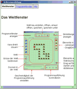 Die Integrierte Entwicklungsumgebung sieht immer mindestens eine selbst erzeugbare Welt sowie eine Möglichkeit, Kara automatisch handeln zu lassen, vor.