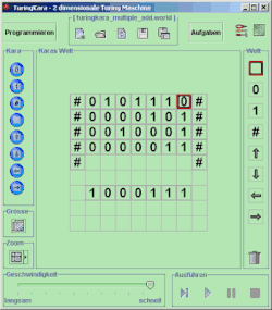 TuringKara ist eine Turing-vollständige Version von Kara und bietet statt des Marienkäfers Kara einen Lese- und Schreibkopf (kurz nur Lesekopf, vergleiche Festplatte).