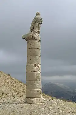Der Hügel wurde ursprünglich von drei Paaren von ionischen Säulen im Süden, Nordwesten und Nordosten flankiert. Sie stehen auf 0,60 Meter hohen Plinthen, sind über 7 Meter hoch und haben einen Durchmesser von 1,70 Metern. Im Nordosten sind noch beide Säulen erhalten, von denen die eine einen Stier trägt, während die andere eine Inschrift vorzuweisen hat, durch die drei der Bestatteten identifiziert werden konnten. Im Nordwesten ist eine Säule erhalten, auf der ein Dexiosisrelief steht, das vermutlich Laodike und Mithridates zeigt. Es ist die einzige bekannte Dexiosis von Kommagene, auf der eine Frau abgebildet ist. Am Abakus der Säule, in acht Meter Höhe, befindet sich eine weitere Inschrift, die erst 1979 von Jörg Wagner entziffert werden konnte. Darin wird Laodike, die zweite Tochter Antiochos’ erwähnt, die mit dem Partherkönig Orodes II. vermählt war. Dadurch konnte die Anlage Mithridates II. zugewiesen werden, nachdem Dörner sie zunächst Mithridates Kallinikos, dem Vater Antiochos I. zugeschrieben hatte. Die zweite, zerstörte Säule im Nordwesten trug ein Löwenbild, dessen Kopf noch in der Nähe liegt. Die südliche Säule schließlich trägt eine Adler-Skulptur, die dem gesamten Grabhügel den Namen gibt.