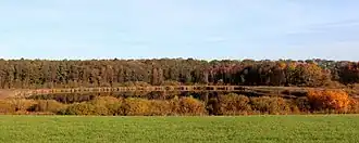 Nur 500 Meter entfernt verläuft die B 198, hinter dem Uferwald die stillgelegte Bahnstrecke Ganzlin–Röbel.