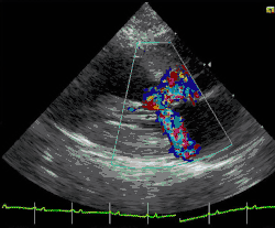 Farbdopplerdarstellung einer HOCM bei einer Katze