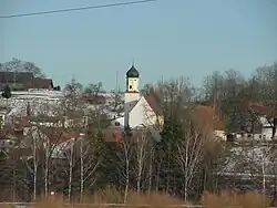 Das Kirchdorf liegt 3 Kilometer nordwestlich des Ortes Kronburg auf einem Hügel oberhalb eines Iller-Stausees an der Landesgrenze zu Baden-Württemberg.