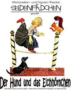 „Der Hund und das Eichhörnchen“ – Marionettenstück von Karin Lübben nach dem „Verzellsche für Blahge: Dä Hond on dat Eechhohn“ von Johanna Kinkel.[12]