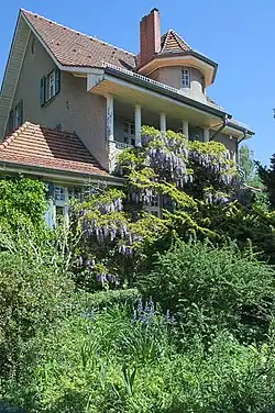 Das Wohnhaus wurde ab 1911 im zeittypischen Landhausstil errichtet, wie er etwa auch durch Hermann Muthesius (1861–1927) vertreten wurde. Die Innenausstattung ist vor allem im Erdgeschoss mit Eingangshalle, Wohnraum sowie Arbeitszimmer mit Bibliothek weitgehend im Originalzustand erhalten und wurde seit der Nutzung als Denkmal weiter restauriert.[6]